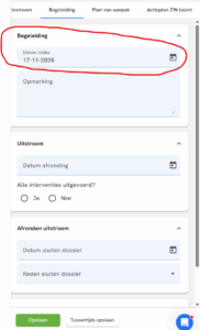 Intake plannen → datum invullen bij Begeleiding + relevante opmerkingen.